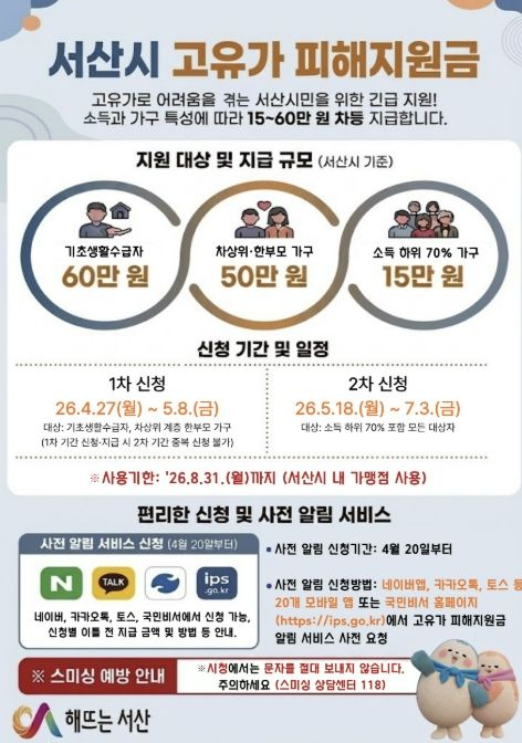 시 관계자는 “고유가 피해 지원금의 원활한 신청과 지급에 최선을 다하겠다”라고 말했다.