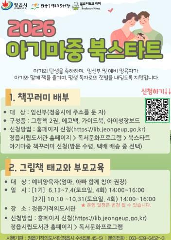 인사이드피플 노재현 기자 | 정읍시가 태교 단계부터 책과 함께하는 육아 문화를 조성하기 위해 ‘임신부 아기마중 북스타트 사업’을 신규 운영한다.