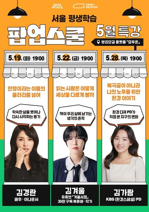 인사이드피플 노재현 기자 | 서울특별시평생교육진흥원이 지난 4월 도봉구 쌍문역 인근에 개관한 서울시 첫 역세권 평생학습 거점 ‘서울 평생학습 팝업스쿨’을 확대 운영한다. 시범운영 한 달간 500여 명이 참여했으며, 5월에는 정규강좌, 명사특강, 러닝숍 등 3개 영역에서 총 13개 과정을 편성하고, 650명의 시민 참여를 목표로 한다.