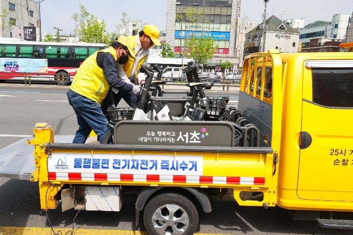 최근 전기자전거와 킥보드 등 개인형 이동수단 이용이 증가하면서 보도 곳곳에 방치되는 사례가 늘고 있다. 특히 전기자전거는 관련 조례상 견인 대상에서 제외돼 관리 사각지대가 발생해 왔다. 실제로 서초구에 접수된 전기자전거 주정차 민원은 2023년 4,100건에서 2025년 5,300건으로 2년 사이 약 30% 증가하는 등 주민 불편과 보행안전 위협이 커지고 있는 상황이다. 이에 구는 보행안전 확보를 위해 직접 전기자전거를 수거하는 조치가 필요하다고 판단, 지난 4월 1일부터 계도와 홍보를 거쳐 27일부터는 직접 수거에 나선다.