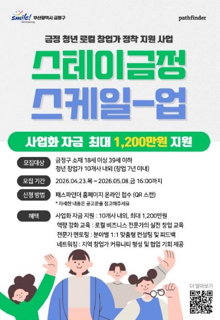 인사이드피플 노재현 기자 | 부산 금정구는 청년 창업가의 지역 기반 창업과 로컬 비즈니스 활성화를 위해 ‘2026 금정 청년 로컬 창업가 정착 지원사업(스테이 금정 Scale-up)’ 참여 기업을 모집한다.