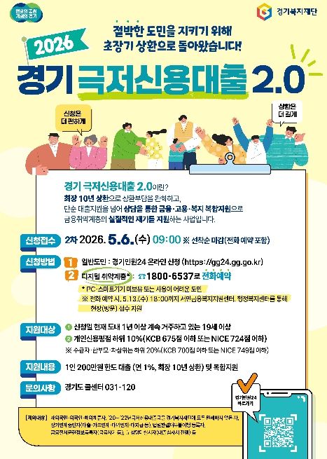 인사이드피플 노재현 기자 | 경기도가 5월 6일 오전 9시부터 금융취약계층의 생활 안정을 지원하는 ‘경기 극저신용대출 2.0’ 2차 접수를 시작한다.