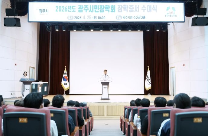 인사이드피플 노재현 기자 | 광주시는 지난 25일 광주시청 수어장대홀에서 (재)광주시민장학회 2026년도 장학 증서 수여식을 개최했다.