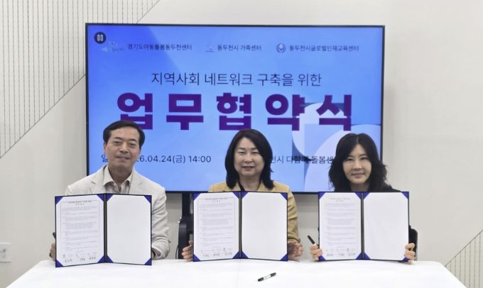 인사이드피플 노재현 기자 | 동두천시글로벌인재교육센터는 지난 24일 동두천시가족센터, 동두천시다함께돌봄센터1호점(경기도아동돌봄동두천센터)과 함께 지역사회 네트워크 구축을 위한 3자 간 업무협약(MOU)을 체결했다고 밝혔다.