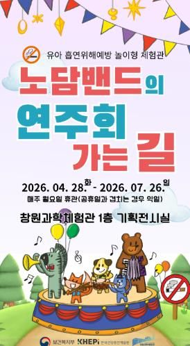 인사이드피플 노재현 기자 | 창원특례시 창원과학체험관은 오는 4월 28일부터 7월 26일까지 1층 기획전시실에서 유아 대상 흡연 예방 놀이형 특별전시 ‘노담밴드의 연주회 가는 길’을 개최한다.