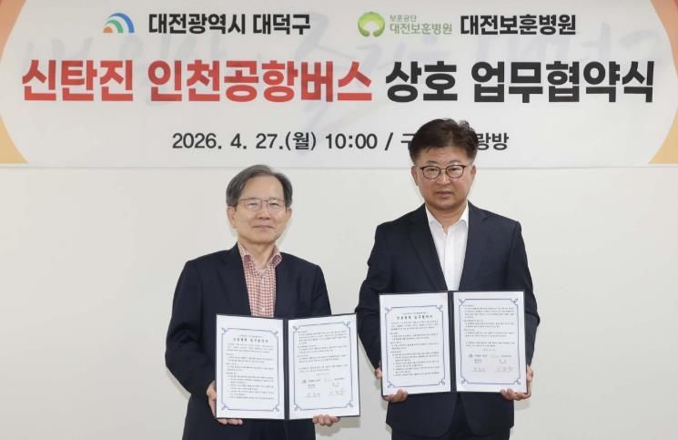 인사이드피플 노재현 기자 | 대전 대덕구는 27일 신탄진-인천공항 간 공항버스 이용 활성화를 위해 대전보훈병원과 업무협약MOU)을 체결했다.