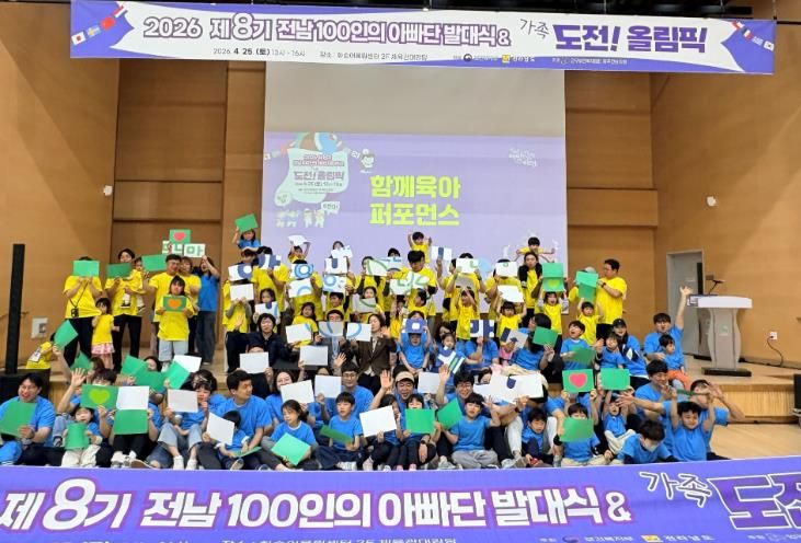 인사이드피플 노재현 기자 | 전라남도는 최근 화순 어울림센터체육관에서 ‘2026년 제8기 전남 100인의 아빠단 발대식 및 도전! 가족올림픽’을 열고, 아빠의 육아 참여 확대와 함께하는 돌봄 문화 확산을 다짐했다.