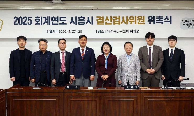 인사이드피플 김재윤 기자 | 경기 시흥시의회가 4월 27일 의회운영위원회 회의장에서 2025회계연도 시흥시 결산검사위원 위촉식을 개최했다.