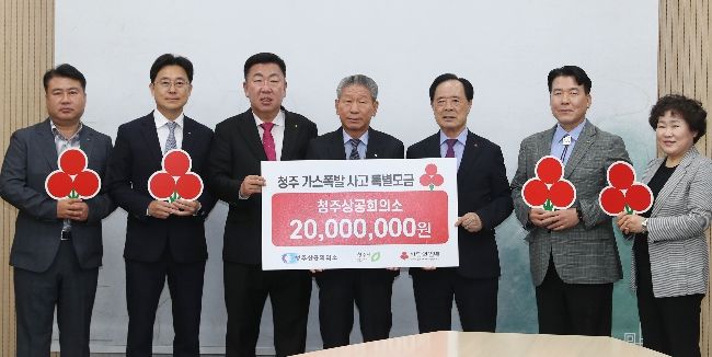 청주상공회의소는 성금 2천만원을 청주시에 전달했다. 차태환 청주상공회의소 회장은 “예기치 못한 사고로 어려움을 겪고 있는 이웃들에게 조금이나마 힘이 되기를 바란다”며 “앞으로도 회원들과 함께 지역사회 소외계층과 재난 피해 이웃을 위한 나눔 활동을 지속적으로 이어가겠다”고 말했다.
