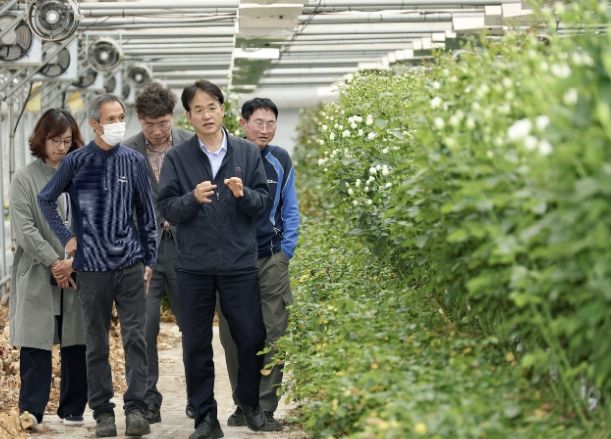 이번 방문에서 ‘물올림(색상 가공)’ 기술을 통해 고부가가치 장미를 생산하며 해외 시장을 선도하고 있는 농가의 기술력을 확인하고 농가 관계자를 격려했다.