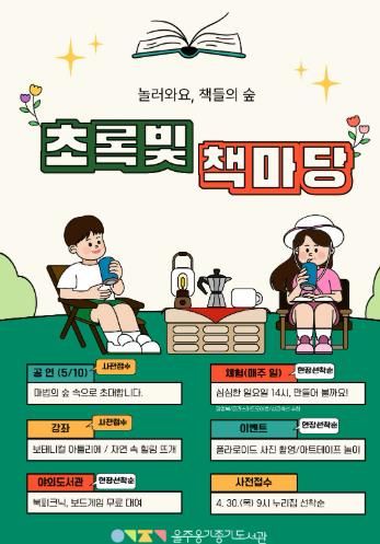 인사이드피플 노재현 기자 | 울주군 옹기종기도서관이 다음달 2일부터 오는 6월 30일까지 상설형 야외도서관 ‘초록빛 책마당’을 운영한다고 28일 밝혔다.