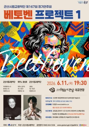 인사이드피플 강애자 기자 | 군산시립교향악단이 오는 6월 11일 오후 7시 30분, 군산예술의전당 대공연장에서 제167회 정기연주회 ‘베토벤 프로젝트 I’를 개최한다.