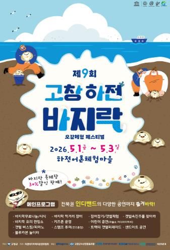 인사이드피플 노재현 기자 | 고창군이 오는 5월1~3일 심원면 하전어촌체험마을 일원에서 ‘제9회 하전바지락 오감체험 페스티벌’을 개최한다고 밝혔다.