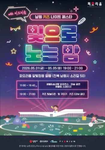 남원시 관계자는 “제96회 춘향제와 어린이날 주간을 맞아 남원을 찾는 가족 단위 방문객에게 특별한 추억을 선물하고자 이번 프로그램을 준비했다”며 “신나는 키즈 동요 EDM 파티와 블랙라이트 체험, 빛놀이 콘텐츠를 통해 아이들이 주인공이 되는 남원의 밤을 가족 모두가 함께 즐기시길 바란다”고 말했다.