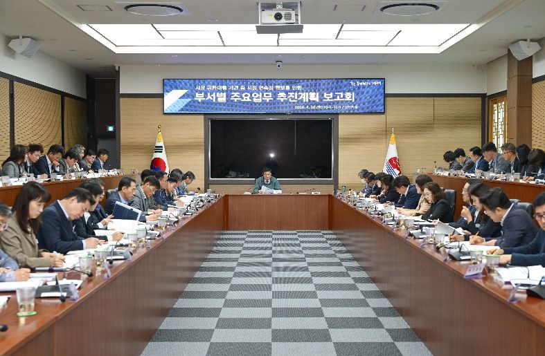 4월 28일 시청 중회의실에서 열린 이번 보고회는 민기식 거제시장 권한대행 주재로 국 ・소장 및 전 부서장이 참석하여 시정 운영의 연속성과 안정성 확보를 위한 구체적인 업무 추진계획을 논의했다.