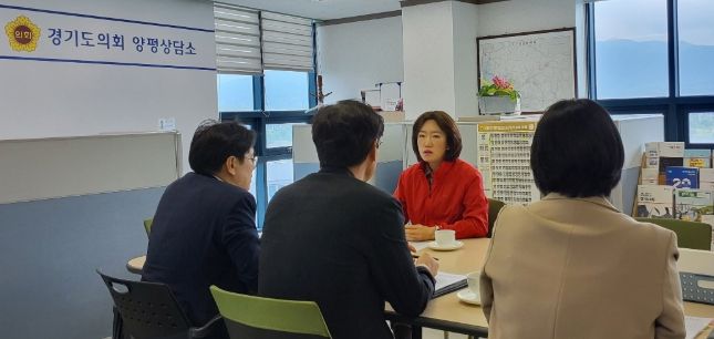 인사이드피플 김재윤 기자 | 경기도의회 기획재정위원회 부위원장 이혜원 의원 (국민의힘, 양평 2) 은 27일 양평상담소에서 경기도청 기획담당관 관계자와 함께 '경기도 행정기구 및 정원조례 개정' 관련 업무보고를 받고, 국가지원 지방도 건설 사업 및 지방채 발행 관련한 주요 현안을 점검했다.