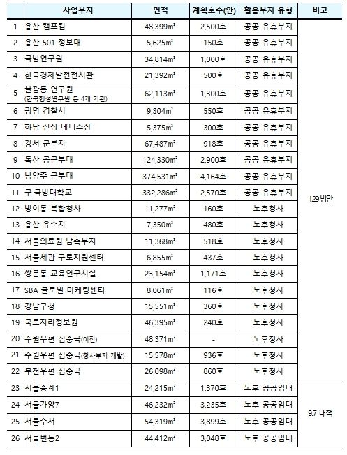 특히, 이번 국무회의 시 의결된 물량 중 1.29 방안 물량은 총 2.2만 호 규모이며, 이 중 1.3천 호와 (예비타당성조사 비대상인) 소규모 사업 등 1.6천 호를 합하여 총 2.9천 호를 ’27년 착공할 계획이다.