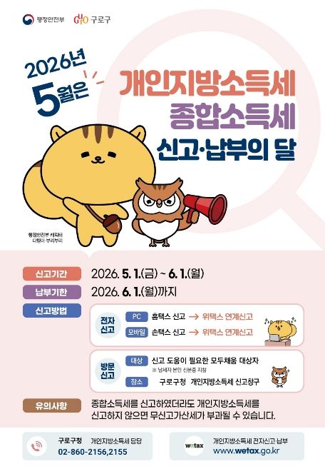 인사이드피플 노재현 기자 | 구로구가 5월 한 달간 개인지방소득세(종합소득) 신고·납부 기간을 운영한다.