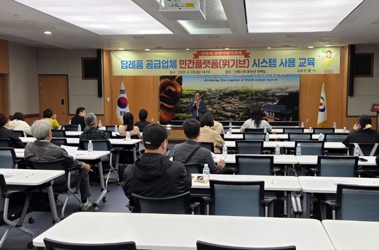 안동시는 계약 당일인 28일 안동시청 웅부관 청백실에서 관내 답례품 제공업체 대표와 담당자 30여 명을 대상으로 시스템 사용 교육을 실시했다. 이번 교육은 위기브 플랫폼을 통한 효율적인 주문 관리와 신속한 고객 응대 방안을 중심으로 진행됐으며, 명절 등 기부 집중 시기를 대비한 수급 관리 체계도 함께 점검했다.