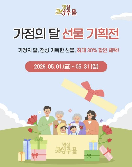 인사이드피플 노재현 기자 | 상주시가 운영하는 농특산물 온라인 쇼핑몰 ‘명실상주몰’에서 5월 가정의 달을 맞아 5월 1일부터 31일까지 특별 할인행사를 진행한다.
