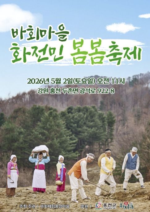 인사이드피플 강애자 기자 | 홍천 산골 마을에서 화전민의 삶과 봄의 식문화를 한자리에서 체험할 수 있는 ‘화전민 봄봄 축제’가 열린다. 홍천군 두촌면 바회 마을은 오는 5월 2일 오전 11시부터 마을 일원에서 주민 참여형 축제를 개최한다.