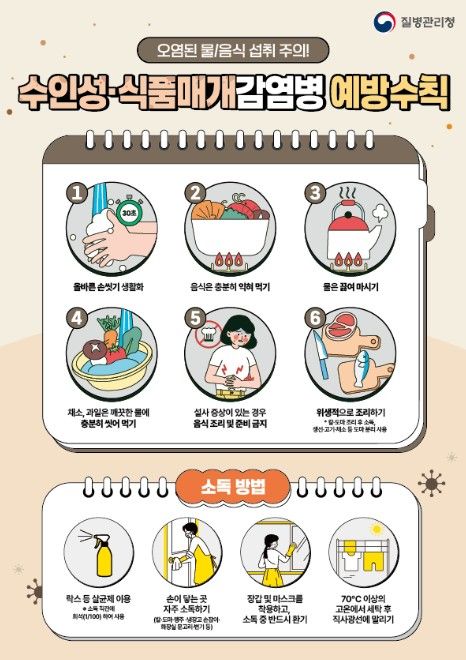 여름철은 기온 상승으로 병원성 미생물의 증식이 활발해지고 야외활동 및 휴가가 증가하는 시기로, 집단 발생 위험이 높아지는 만큼 개인위생 수칙 준수가 중요하다.