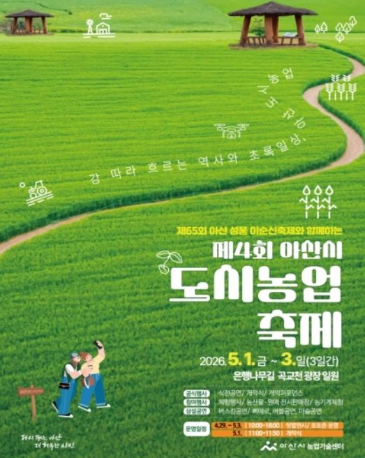 인사이드피플 강애자 기자 | 아산시는 ‘제65회 아산 성웅 이순신축제’와 연계한 ‘제4회 아산시 도시농업축제’를 오는 5월 1일부터 3일까지 3일간 은행나무길 곡교천 광장 일원에서 개최한다.