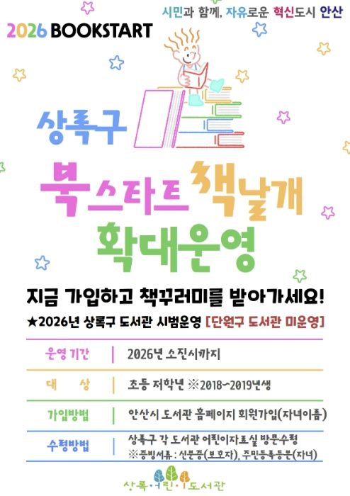 인사이드피플 노재현 기자 | 안산시는 상록구 소재 도서관에서 운영 중인 ‘북스타트 사업’ 대상을 기존 영유아에서 초등학교 저학년 학생까지로 확대한다고 30일 밝혔다.