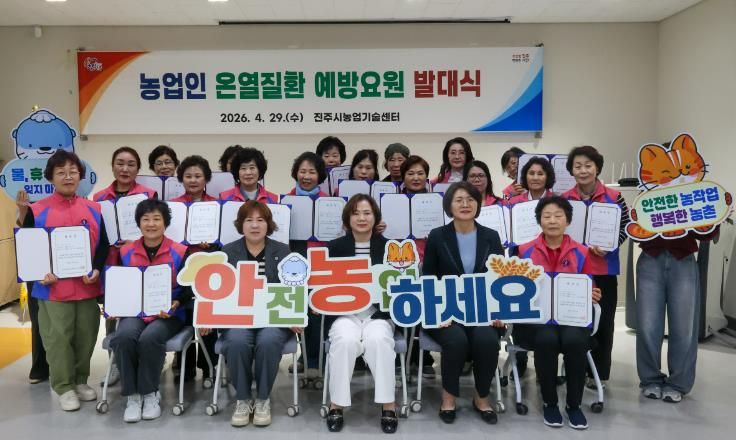 인사이드피플 노재현 기자 | 진주시는 29일 농업기술센터 교육장에서 온열질환 예방 요원을 위촉하는 발대식을 열고, 안전한 영농 환경을 조성하기 위한 결의를 다졌다고 밝혔다.