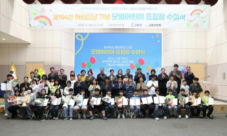 공영민 군수는 “오늘 표창을 받은 어린이들의 바른 생활과 성실한 모습은 고흥군의 큰 자랑”이라며 “앞으로도 어린이들이 꿈과 희망을 키우며 건강하게 성장할 수 있도록 아동 복지와 교육 지원에 최선을 다하겠다”고 말했다.