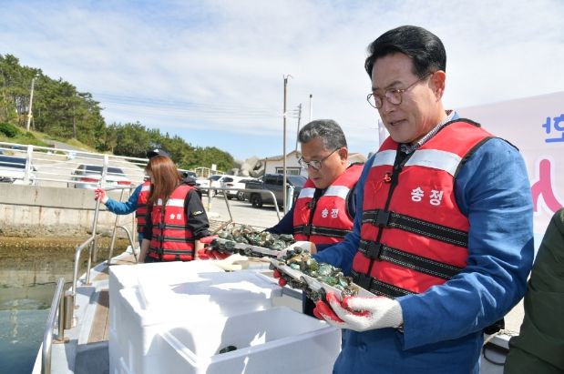 울주군은 이날 서생면 송정항에서 이순걸 군수와 관계 공무원, 어촌계 관계자 등이 참석한 가운데 전복 방류 행사를 가졌다.