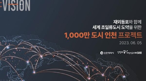 ‘1,000만 도시 인천 프로젝트’는 전 세계 유대인 네트워크가 만든 이스라엘, 글로벌 화상 네트워크가 성장동력이 된 홍콩·싱가포르처럼 재외동포청이 있는 인천광역시가 전 세계 750만 한인 네트워크의 중심으로 거듭나 세계 초일류도시로 도약하기 위한 종합전략이다.