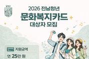 인사이드피플 심정보 기자 | 담양군은 관내 청년을 대상으로 문화생활 향유 및 자기 계발 기회를 제공하고자 전남청년 문화복지카드 지원사업을 추진한다고 9일 밝혔다. 주소지 읍·면 사무소 방문 신청은 2월 9일부터 3월 31일까지, 농협카드 누리집 신청은 2월 20일부터 3월 31일까지 가능하며 기존 수혜자도 반드시 다시 신청해야 한다. 다만 공공기관 근무자, 학교 밖 청소년 수당 대상자, 여성농업인 행복바우처 대상자는 제외되며, 문화누리카드 수혜자는 중복 지원을 받을 수 있다. 2024년 2월 9일 이전부터 도내 거주한 19~28세 청년을 대상으로 하며, 연 25만 원의 문화복지비가 지원된다. 지원금은 문화·공연 관람, 학원 수강, 도서 구입 등 문화·여가 및 자기 계발 분야에서 사용할 수 있으며, 전남 도내에서 올해 안에 모두 사용해야 한다. 군 관계자는 “전남청년 문화복지카드 지원사업을 통해 청년들의 문화 참여 기회를 넓히고 삶의 질을 높이는 계기가 되길 바란다”라며 “앞으로도 청년의 수요를 반영한 문화·복지 정책을 추진해 청년이 머물고 성장할 수 있는 담양을 만들어 가겠다”라고 말했