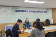 인사이드피플 김재윤 기자 | 김용일 서울특별시의회 정책위원장(국민의힘, 서대문4)은 23일 11시 정책위원장실에서 법제과장, 법제정책팀장 등이 참석한 가운데 간담회를 갖고 22기 정책위원회 연구발표 및 워크숍 일정 계획 등을 논의하고 확정했다. 이날 간담회에서 김 위원장은 정책위원회 연구성과 공유와 연구역량 강화 등을 위해 지난 9일 전체회의에서 결정한 정책위원회 연구발표 및 워크숍 일정(3.19.~3.20.)에 대한 계획안을 마련했다. 먼저, 1일 차(3.19.(목))에는 연구발표회와 세미나를 개최하여 그동안 진행한 연구과제 발표와 향후 소위원회 활동 계획 등을 논의하고 2일 차(3.20.(금))에는 정책현장 방문활동 등을 실시할 예정이다. 김용일 정책위원회 위원장은 “연구성과 공유와 과제 발굴, 연구역량강화를 위해 내실 있는'연구발표회 및 워크숍'을 개최함으로써 서울 시정과 교육행정의 현안에 대해 실효적인 대안을 제시하도록 적극 노력하겠다.”고 밝혔다.