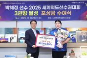 인사이드피플 조은설 기자 | 고양특례시가 지난 16일 ‘2025 국제역도연맹(IWF) 세계역도선수권대회’ 여자 86kg 이상급 3관왕에 오른 박혜정 선수에게 포상금을 수여하며 그간의 노고를 격려했다. 이날 수여식에는 이동환 고양특례시장을 비롯해 교육문화국장, 체육정책과장, 지도자가 참석했으며, 박혜정 선수에게는 격려 포상금 2,000만 원이 수여됐다. 박혜정 선수는 지난 10월 3일부터 12일까지 노르웨이 푀르데에서 열린 세계역도선수권대회에서 인상 125kg, 용상 158kg, 합계 283kg을 들어 올리며 세 부문 모두 금메달을 차지, 대한민국의 유일한 금메달리스트이자 3관왕에 올랐다. 이번 우승은 2024년 바레인 세계역도선수권대회 2위의 아쉬움을 딛고 재기한 값진 성과로, 2023년 리야드 대회에 이어 두 번째 세계선수권 챔피언 타이틀을 거머쥔 쾌거다. 또한 박혜정 선수는 올해 8월 중국 푸저우에서 열린 ‘동아시아역도선수권대회’와 ‘한·중·일 국제역도대회’에서 연이어 3관왕을 차지한 데 이어, 이번 세계선수권에서도 세 부문을 석권하며 올해만 세 차례 국제대회 3관왕의 위업을 달성했다. &nbs