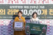 인사이드피플 김재윤 기자 | 강북구의회 김명희 의장(번1·2동, 수유2·3동)은 지난 12월 2일, 강북문화예술회관 소나무홀에서 열린 강북문화원 개원 29주년 기념 ‘사랑의 라면트리’ 행사에 참석해 지역 이웃을 위한 나눔 활동에 함께했다. ‘사랑의 라면트리’ 행사는 강북문화원이 주민들로부터 받아온 관심과 성원을 어려운 이웃들에게 되돌리기 위해 마련한 사회공헌 행사로, 올해로 3회째를 맞았다. 한국마사회 지원사업으로도 선정되며 지역의 대표적 나눔 행사로 자리잡았다. 행사는 라면 전달식을 시작으로 설장구 식전공연, 유공자 표창, 문화공연 등 다양한 프로그램으로 채워졌다. 특히 올해는 강북미술협회가 20여 점의 작품을 기증해 ‘그림 기부전’을 함께 열며, 문화와 나눔을 결합한 새로운 형태의 기부가 주목을 받았다. 김명희 의장은 황정희 문화원장과 함께 라면 전달식에 참석해 정성을 모은 라면 1만 개를 어려운 이웃에게 전달할 준비를 마쳤으며, ‘2025 서울시 구의원 한마음 체육대회’에서 받은 ‘아차상’ 상금도 문화원에 기부해 뜻을 더했다. 김명희 의장은 “3년째 이어지는 ‘사랑의 라면트리’가 이제는 지역의