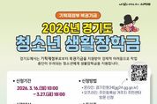 인사이드피플 노재현 기자 | 의정부시는 3월 16일부터 27일까지 ‘2026년 경기도 청소년 생활장학금’ 사업 대상자를 모집한다. 해당 사업은 기획재정부 복권기금을 재원으로 하고, 국민기초생활보장수급자, 법정 차상위 계층, 법정 한부모(조손)가족 등 생활이 어려운 청소년을 대상으로 중학생(학교 밖 청소년은 2011~2013년생)에게는 연 100만 원, 고등학생(학교 밖 청소년은 2008~2010년생)에게는 연 150만 원을 4월과 9월에 나눠 지급한다. 청소년 본인 또는 보호자가 관할 동 주민센터에 방문하거나 ‘경기민원24’에서 신청할 수 있다. 생활장학금 관련 자세한 사항은 의정부시청 누리집을 참고하거나, 관할 동 주민센터 및 교육청소년과 청소년팀에서 안내받을 수 있다. 이재진 교육청소년과장은 “청소년들이 경제적 어려움 때문에 학업을 중단하는 일이 없도록 계속해서 노력하겠다”고 말했다.