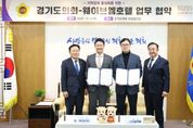 인사이드피플 김재윤 기자 | 경기도의회는 4일 오후 의장 접견실에서 시흥 소재 웨이브엠 호텔(대표 천수봉)과 ‘도의원 및 직원 복지 증진과 지역 내 관광·숙박업 활성화를 위한 업무협약’을 체결했다. 이번 협약은 도의회 구성원의 복지 수준을 높이는 동시에, 지역 내 숙박·관광 산업의 경쟁력 강화와 상생 협력 기반을 마련하기 위해 추진됐다. 업무협약식에는 김진경 의장(더민주·시흥3)과 김종배 의원, 임채호 의회사무처장 및 웨이브엠 호텔 대표 등이 참석했다. 이날 양 기관은 ▲객실 및 부대업장 이용 시 할인 제공(객실 20% 할인 등) ▲조식 할인 및 객실 이용 시 1인 조식 무료 제공 ▲행사 개최 등 다양한 분야에서의 상호 협력 추진 등에 대한 업무협약을 체결했다. 김진경 의장은 “이번 협약을 통해 도의원과 직원들은 좋은 시설을 편리하게 이용할 수 있게 되고, 동시에 지역 관광 및 숙박 산업에도 의미 있는 보탬이 될 것”이라며 “경기도의회와 지역 기업이 서로 신뢰를 쌓고 협력의 폭을 넓힌다는 점에서 협약의 의미가 크다”라고 기대했다. 이어 “오늘의 협약이 단순한 혜택 제공을 넘어 지역 경제