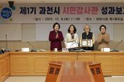 인사이드피플 노재현 기자 | 과천시는 9일 시청 제1회의실에서 신계용 과천시장과 시민감사관 20여 명이 참석한 가운데 ‘2025년 시민감사관 성과보고회’를 개최했다. 과천시의 시민감사관 제도는 법무·회계·복지·시설·환경 등 5개 분야의 외부 전문가 20명이 참여해 시정 감사에 직접 참여하는 시민 참여형 감사제도다. 시는 시민의 시각을 행정에 반영해 공정하고 투명한 감사 시스템을 구축하기 위해 2023년부터 제도를 운영하고 있다. 올해 시민감사관은 자체보조금 특정감사, 과천문화재단 종합감사, 자동심장충격기(AED) 특정감사, 환경사업소 종합감사 등 총 5회의 자체감사에 참여했다. 그 과정에서 시정요구 12건, 제도 개선·주민불편 해소 의견 44건 등 총 56건의 의견을 제시하며 생활 현장에서의 감시 기능을 충실히 수행했다. 보고회에서는 2025년 활동 우수사례가 공유됐으며, 감사활동을 통해 시정 발전에 기여한 보건 분야 김형숙 시민감사관, 복지 분야 전경옥 시민감사관에 대한 표창도 진행됐다. 과천시는 이날 성과보고회를 통해 올해 운영 성과를 점검하고, 2026년 시민감사관 운영 계획을 발표했다. 내년
