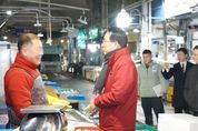 인사이드피플 심정보 기자 | 이완섭 서산시장이 우리 민족 고유 최대 명절인 설을 앞두고 13일 서산동부전통시장을 방문했다. 이날 이완섭 시장은 제수용품과 농축산물 판매 점포 등을 둘러보며 가격 동향과 수급 상황을 점검함과 동시에 시장 상인들의 애로사항을 청취하고 격려하는 시간을 가졌다. 설을 맞아 명절 성수품을 찾기 위해 전통시장을 방문한 시민들과 인사를 나누며 가족과 함께 따뜻한 명절을 보내길 바라는 덕담도 전했다. 이완섭 서산시장은 “어려운 여건 속에서도 지역 경제를 위해 애쓰시는 상인과 시민분들의 노력에 감사드린다”라며 “전통시장 활성화를 위한 다양한 시책을 마련하고 추진하는 데 최선을 다하겠다”라고 말했다.