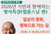 인사이드피플 강애자 기자 | 통영시는 오는 4월 18일 오후 2시, 통영시민문화회관 대극장에서 '평생학습도시 통영, 2026년 시민과 함께하는 명사초청 강연'의 두 번째 순서로 법륜스님을 초청해 명사 특강을 개최한다. 평화재단 이사장이자 정토회 지도법사인 법륜스님은 즉문즉설 형식의 강연을 통해 사람들의 다양한 고민에 대해 명쾌한 해법을 제시하며 큰 호응을 얻고 있다. 이번 강연은 ‘일상의 평화, 행복으로 가는 길’을 주제로 진행되며, 특히 법륜 스님 특유의 ‘즉문즉설(卽問卽說)’이 예정돼 있어 기대를 모으고 있다. 정해진 주제 없이 현장에서 시민들이 직접 작성한 고민과 번뇌를 ‘즉문함’에 넣으면, 스님이 이를 즉석에서 선택해 명쾌한 해답과 위로를 건네는 소통형 강연으로 꾸며질 예정이다. 특히 삶의 무게와 고통 속에서 길을 찾는 시민들에게 스님의 지혜로운 통찰이 담긴 답변이 실시간으로 전해지며 깊은 공감과 치유의 장이 될 것으로 기대된다. 참석을 희망하는 시민은 사전 신청 없이 당일 현장 방문을 통해 자유롭게 참여할 수 있다. 시 관계자는 “이번 강연이 시민들에게 마음의