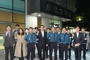 인사이드피플 김재윤 기자 | 아산시의회는 지난 10월 22일 제80회 경찰의 날을 맞아 온천지구대를 방문해 지역 치안을 담당하는 경찰관들을 격려했다. 이날 방문에는 홍성표 의장과 명노봉 의원, 박효진 의원이 함께했으며, 지역 치안 현황을 점검하는 현장 근무자들의 의견과 애로사항을 청취했다. 의원들은 “지역사회의 치안 유지와 주민 안전을 위해 헌신하시는 경찰관 여러분께 깊이 감사드린다”며 “시민이 안심하고 생활할 수 있는 안전한 지역사회 조성을 위해 의회도 적극 협력하겠다”고 말했다. 홍성표 의장은 “시민의 안전과 생명을 지키기 위해 낮과 밤을 가리지 않고 현장에서 최선을 다하시는 경찰관 여러분께 진심으로 감사드린다“면서 ”아산시의회는 시민의 안전을 최우선 가치로 삼고, 경찰과의 긴밀한 협력을 통해 신뢰받는 안전도시 아산을 만드는 데 최선을 다하겠다“고 밝혔다. 사진 설명: 아산시의회 홍성표 의장과 명노봉 의원, 박효진 의원은 경찰의 날을 맞이하여 온천지구대를 방문해 경찰관들을 격려하고 있다.