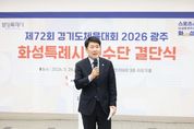 인사이드피플 김재윤 기자 | 화성특례시의회는 26일 화성종합경기타운 3층 라운지홀에서 열린 제72회 경기도체육대회 화성시 선수단 결단식에 참석해 선수단을 격려하고 4연패 달성을 위한 결의를 다졌다. 이날 행사에는 배정수 의장을 비롯해 김종복 문화복지위원장, 송선영·이용운 의원, 화성시체육회 임원과 종목단체 관계자, 선수단 등 약 150여 명이 참석했다. 이날 결단식은 경기도체육대회 출전을 앞둔 선수단의 사기를 높이고 각오를 다지는 자리로 마련됐다. 화성특례시 선수단은 오는 4월 16일부터 18일까지 광주시 일원에서 열리는 제72회 경기도체육대회에 출전한다. 육상, 수영, 축구 등 27개 종목에 참가해 종합우승 4연패에 도전한다. 배정수 의장은 “묵묵히 쌓아온 훈련의 시간과 노력을 믿고 끝까지 당당하게 경기에 임해주시기 바란다”며 “선수 여러분의 땀과 투혼이 화성특례시의 자부심”이라고 말했다. 이어 “화성특례시의회도 선수들이 오직 경기에 집중할 수 있도록 체육 환경 조성과 지원에 최선을 다하겠다”며 “4연패 달성을 진심으로 기원한다”고 덧붙였다. 화성특례시의회는 선수들이 충분