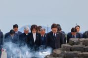 인사이드피플 노승선 기자 | 이재명 대통령과 김혜경 여사는29일 오전, 제주 4·3 평화공원을 찾아 영령들께 참배하고 유족들과 함께하는 시간을 가졌다. 이번 방문은 국가기념일인 ‘제주 4·3 희생자 추념일’을 앞두고 이루어진 것으로, 이 대통령 내외는 헌화와 분향을 통해 희생자들의 넋을 기렸다. 이어 이 대통령 내외는 희생자 15,126위의 위패가 모셔진 ‘위패봉안실’과 4·3 당시 행방불명되어 시신조차 찾지 못한 희생자들의 표석이 설치된 ‘행방불명인 표석’을 찾아 희생자들을 추모했다. 이 대통령은 위패봉안실에서 나와 방명록에 ‘제주 4·3을 기억하며 국가폭력의 재발을 막기 위해, 민형사 시효제도를 폐기하겠습니다.“라고 남겼다. 이 대통령이 방명록을 작성하는 모습을 지켜보던 임문철 제주4·3평화재단 이사장을 비롯한 관계자들은 문구를 보고 박수로 호응했다. 참배 이후 이 대통령 내외는 제주 4·3 희생자 유족들과 오찬을 함께하며 아픔을 나누고 위로하는 시간을 가졌다. 오찬 간담회에는 윤호중 행정안전부 장관과 오영훈 제주도지사, 김한규·문대림·위성곤 국회의원을 비롯