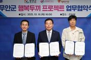 인사이드피플 노재현 기자 | 전남 무안군은 지난 16일 무안군청 군수실에서 행복얼라이언스 및 행복도시락사회적협동조합과 함께 결식 우려 아동을 위한 '행복두끼 프로젝트' 업무협약을 체결했다. 이날 협약식에는 김산 군수, 조민영 행복얼라이언스 사무국 본부장, 최준 행복도시락사회적협동조합 사무국장이 참석했다. '행복두끼 프로젝트'는 지방정부·기업·사회적기업이 협력해 아동 결식문제를 해결하는 사회공헌 프로그램으로, 관내 결식 우려 아동 20명에게 1년간 매주 1~2회 총 4천 2백만원 상당의 밑반찬 도시락을 제공하여 끼니 해결이 어려운 아이들의 건강한 성장을 돕는 사업이다. 김산 군수는 “행복두끼 도시락은 성장기 아이들에게 큰 희망과 정성이 될 것”이라며 “지역의 취약계층 아동이 소외되지 않도록 다양한 민관 협력사업을 더욱 확대해 나가겠다”고 밝혔다. 아울러, 군은 매년 저소득 취약계층 아동 300명에게 방학 및 학기 중 토·공휴일 아동급식을 실시하고 있으며, 앞으로도 아동의 복지 향상과 건강한 성장 환경 조성을 위해 지속적으로 노력할 계획이다.