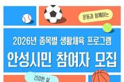 인사이드피플 노재현 기자 | 안성시는 시민 누구나 일상에서 부담 없이 운동을 즐길 수 있도록 ‘2026 종목별 생활체육 프로그램’을 운영하고, 4월부터 참가자를 모집 중이라고 밝혔다. 이번 프로그램은 오는 7월까지 안성시 관내 종목별 체육시설에서 진행된다. 육상, 수영, 배드민턴 등 총 30개 종목이 마련되어 있어 시민들은 자신의 관심사와 체력 수준에 맞는 운동을 자유롭게 선택할 수 있다. 특히 참가비가 전액 무료로 운영되어 경제적 부담 없이 참여할 수 있는 점이 큰 장점이다. 운동을 처음 시작하는 입문자도 쉽게 적응할 수 있도록 기초 실무 위주로 구성됐으며, 다만 일부 종목에 한해 장비 대여 등 최소한의 자부담 비용이 발생할 수 있다. 참여 대상은 운동에 관심 있는 안성시민 누구나 연령과 경험에 관계없이 신청 가능하다. 모집은 종목별 정원에 따라 선착순으로 진행되며, 종목별 담당자에게 직접 문의하거나 안성시체육회 안내를 통해 신청하면 된다. 안성시 관계자는 “생활체육은 건강한 삶을 유지하기 위한 가장 쉽고 확실한 방법”이라며, “이번 프로그램을 통해 많은 시민이 일상 속에서 운동의 즐거움을 찾고