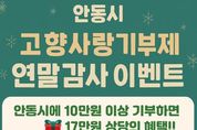 인사이드피플 노재현 기자 | 안동시는 연말정산 시즌을 맞아, 고향사랑기부제 참여자에게 감사의 뜻을 전하고 기부 문화를 확산하기 위해 12월 22일(월)까지 ‘안동시 고향사랑기부제 연말 감사 이벤트’를 진행한다고 밝혔다. 고향사랑기부제는 10만 원 기부 시 3만 원 상당의 답례품과 세액공제 혜택(10만 원까지 전액, 초과분 16.5%)을 받을 수 있는 제도다. 안동시는 여기에 더해, 연말 감사 이벤트 기간(12월 22일까지) 기부자 중 추첨을 통해 30명에게 안동 백진주 쌀 10kg을 추가로 증정할 예정이며, 당첨자는 12월 23일 문자로 개별 안내된다. 참여는 고향사랑e음 누리집 또는 농협은행 오프라인 창구를 통해 가능하다. 안동시는 이번 이벤트가 고향사랑기부제 참여 문화를 확산하고 지역경제 활성화와 기부자 만족도를 높이는 계기가 될 것으로 기대하고 있다. 특히 연말정산에 대한 관심이 높아지는 시기에 기부 혜택과 지역 특산품 선물을 동시에 받을 수 있어 참여가 한층 확대될 것으로 보인다. 안동시 관계자는 “올 한 해 안동을 응원해주신 모든 기부자께 깊이 감사드린다”며 “기부금은 시민의 삶의 질 향상과 지역발전을