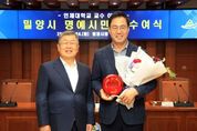 인사이드피플 박미영 기자 | 밀양시는 24일 시를 위해 꾸준히 홍보한 이만기 경상남도배드민턴협회장을 명예시민으로 선정해 명예시민증을 수여했다. 밀양시 명예시민은 다른 지방자치단체 소속 주민 중 대외적으로 밀양시의 위상을 크게 제고한 자 또는 밀양시민의 생활개선 및 문화발전에 크게 공헌한 자 등을 추천받아 명예시민증 수여 심의위원회의 심의를 거쳐 선정된다. 이만기 경상남도 배드민턴협회장은 유튜브를 통해 밀양의 문화·체육, 나노국가산업단지, 스마트팜 등을 직접적으로 홍보했다. 또한 경상남도배드민턴협회장으로서 밀양시의 배드민턴 위상을 한 단계 격상시켜 배드민턴의 메카로 발돋움할 수 있도록 공헌해 밀양시 명예시민으로 선정됐다. 이만기 회장은 “밀양시의 명예시민으로 추천해 주신 시민들에게 감사드리며, 밀양시를 위해서 꾸준히 홍보하고, 밀양시의 발전을 위해 공헌할 수 있도록 직접 발로 뛰겠다”라고 말했다. 박일호 밀양시장은 “TV, 유튜브 등 대중매체 등을 통해 밀양시를 꾸준히 홍보하여 주시기를 바라며, 밀양시 배드민턴 발전에 큰 힘이 되어 달라”며, “밀양시에 대해 꾸준한 애정과 관심을 부탁드린다”라고 말했다.