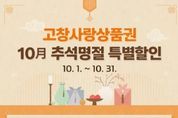 인사이드피플 심정보 기자 | 고창군이 추석을 맞아 군민 생활안정과 지역경제 활성화를 위해 ‘고창사랑상품권 특별할인 행사’를 진행한다. 이번 행사는 10월 한 달간 진행된다. 이번 특별할인은 △상품권 구매시 10% 선할인 △고창사랑카드 결제시 10% 캐시백 적립을 통해 최대 20% 혜택을 받을 수 있도록 구성됐다. 특히, 월 구매한도를 100만 원까지 확대해 군민들의 혜택을 더욱 강화했다. 예를 들어, 10만원 상품권 구매 시 10%(1만 원) 선할인을 적용받아 9만원에 구매하고, 이후 고창사랑카드로 결제하면 결제금액의 10%가 캐시백으로 적립돼 실질적으로 최대 20% 혜택을 누릴 수 있다. 다만, 선할인(10%)이 적용된 금액은 캐시백 적립 대상에서 제외된다. 심덕섭 고창군수는 “이번 추석 명절 특별 할인을 통해 군민들께는 생활비 부담을 덜어드리고, 지역 소상공인들에게는 매출 증대 효과가 기대된다”며 “특히, 군에서 지급하는 군민활력지원금과 정부의 민생소비쿠폰이 더해져 군민 모두가 더욱 넉넉한 추석 명절을 보내시길 바란다”고 밝혔다. 한편, 고창사랑상품권은 전통시장과 지역