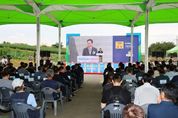 인사이드피플 심정보 기자 | 전남 무안군은 24일 전남서남부채소농협에 첨단 AI 자동화 설비기술의 현장 실증을 위해 구축한 ‘농산물 산지유통 실증센터’ 개소식을 성황리에 개최했다. 이날 개소식에는 김산 군수와 이태문 농림축산식품부 정책보좌관을 비롯해 한국로봇융합연구원, 한국생산기술연구원 등 연구기관 관계자와 전국 각지에서 모인 농협 조합장 등 200여 명이 참석해 센터 개소를 축하하며, 향후 운영 방향에 대한 기대감을 나눴다. 개소식은 △개식 선언 △주요 내외빈 소개 △기념사 및 축사 △홍보영상 및 경과보고 △기념 버튼식 △현장 시연 순서로 진행됐다. 2022년 농식품부 공모사업인 ‘고부가가치식품기술개발사업(국비 207억 원)’ 수행을 위해 구축된 실증센터는 국내 스마트 표준모델로 구축된 신규 APC사업과 연계해 지상 2층의 실증센터 1개 동(1,747㎡)과 저장시설 2개 동(1,658㎡) 규모로 현경면 평산리에 조성됐다. 농산물 산지유통 실증센터는 ▲ AI 기반 농산물 자동 선별․파렛타이징(포장) 시스템 적용 ▲ 자동화 물류 구축 R&D 실증화 지원 ▲ 무인지게차․청소로봇 설비 활용 및 각종 소프